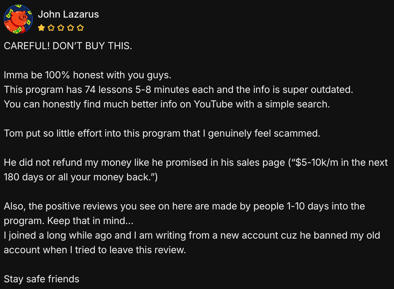 He had so many perfect testimonials without a single bad review and up until now I’d been wondering how that was possible because his course was noticeably bad.